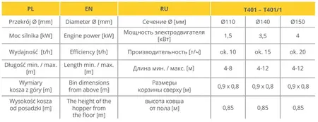 140-es átmérőhöz már 15 tonna dukál óránként! Egészen 12 m-ig bővíthető, hasonlóképpen, mint a 150-es átmérővel rendelkező,